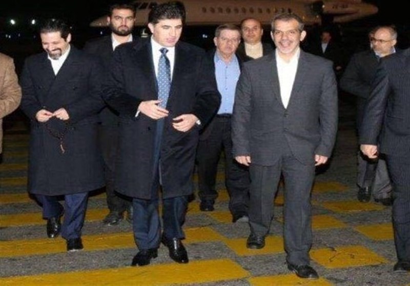 بارزانی پیش از تهران به بغداد رفته و با حیدر العبادی نخست وزیر عراق دیدار و گفتوگو کرده بود.