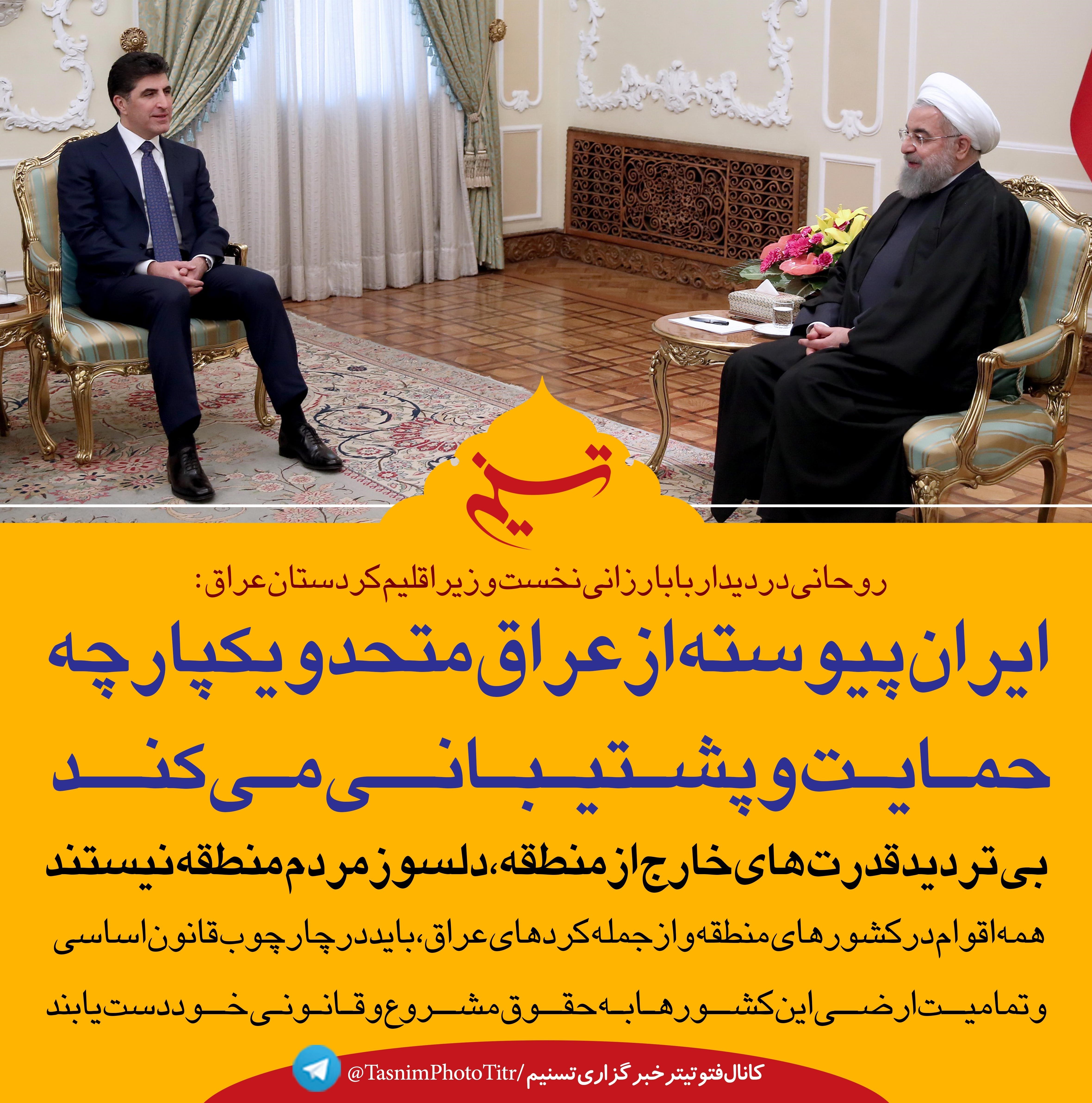 فتوتیتر/روحانی: ایران پیوسته از عراق متحد و یکپارچه، حمایت و پشتیبانی می کند