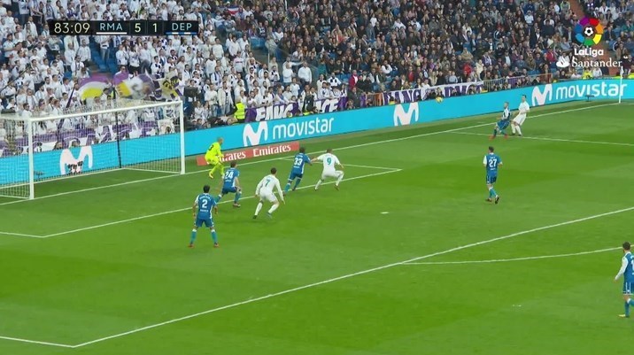 رونالدو برای زدن گل دومش با یک ضربه سر پرشی شجاعانه، در اثر ضربهای که شار، مدافع دپورتیوو با پای خود به سر او زد مجروح و دچار خونریزی شد. شدت خونریزی آنقدر زیاد بود که کادر پزشکی رئال مادرید را به داخل زمین مسابقه بکشاند و ستاره پرتغالی را هم که به سلامت و آمادگی جسمانی خود اهمیت فراوانی میدهد، نگران کند.