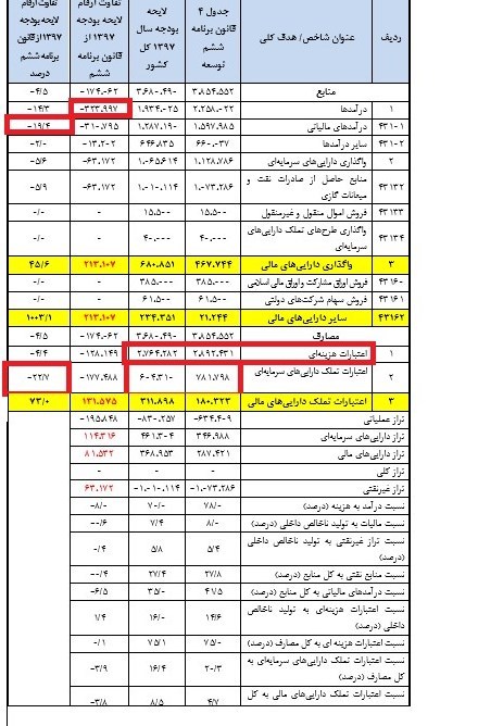در قسمت اعتبارات هزینهای برنامه ششم، عدد 289 هزار میلیارد تومان درج شده اما در لایحه دولت عدد 276 هزار میلیارد تومان ذکر شده است.