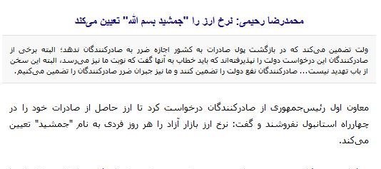 هرچند الآن هدف ما در این گزارش این نیست که بگوییم اصلاً جمشید بسماللههای بازار ارز میتوانند بهتنهایی دلار را گران یا ارزان کنند، خبر مهمتری موجب شد تا نگارنده به نگارش این متن بپردازد.