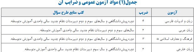 مواد امتحانی آزمون عمومی و اختصاصی کنکور کارشناسی 97 اعلام شد.