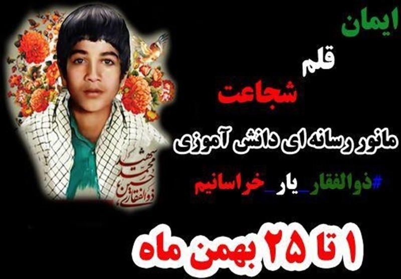 وی عنوان کرد: در این مانور شهید دانش آموز محمد حسین ذوالفقاری به عنوان شهید شاخص دانش آموزی در سال تحصیلی 97-96به منظور تکریم و شناساندن این شهید بزرگوار با عنوان "ذوالفقار یار خراسانیم" از 3 الی 20 بهمن ماه برگزار میشود.