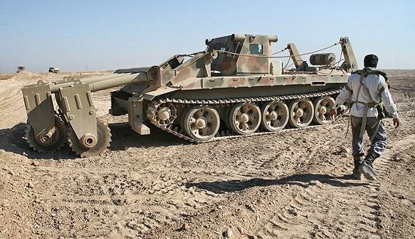بر همین اساس، نظر به اهمیت پاکسازی میادین مین و جلوگیری از تلفات انسانی، صنایع دفاعی جمهوری اسلامی دست به کار ساخت انواع خودروهای مینکوب شده است. یکی از این مینکوبها، خودروی زرهی ساختهشده بر اساس شاسی تانک T-55 است.