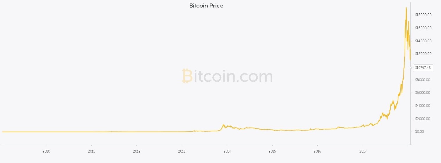 بر همین اساس بیتکوین در روزهای ابتدایی سال 2009 میلادی برای اولین بار قیمت خورده که عدد منهای 8 دلار برای آن ثبت شده است. این ارز طی بیش از 4 سال بعد از آن یعنی تا ماه چهارم سال 2013 دچار فترت است، و تنها در مقاطع کوتاهی به 36.62 دلار ارزشگذاری شده است. این عدد در ماه چهارم 2013، 100 دلار است که در روندی افزایشی در انتهای سال به بیش از 1110 دلار میرسد. این تجربه هرگز تا 2017 تکرار نشد و از 2013 تا 2017 این قیمت روی خط 200 تا 300 دلار ماند، به این ترتیب این ارز از 2009 تا ابتدای 2017، کمتر از 300 دلار رشد داشت. اما شرایط در ادامه بهگونه دیگری رقم خورد.