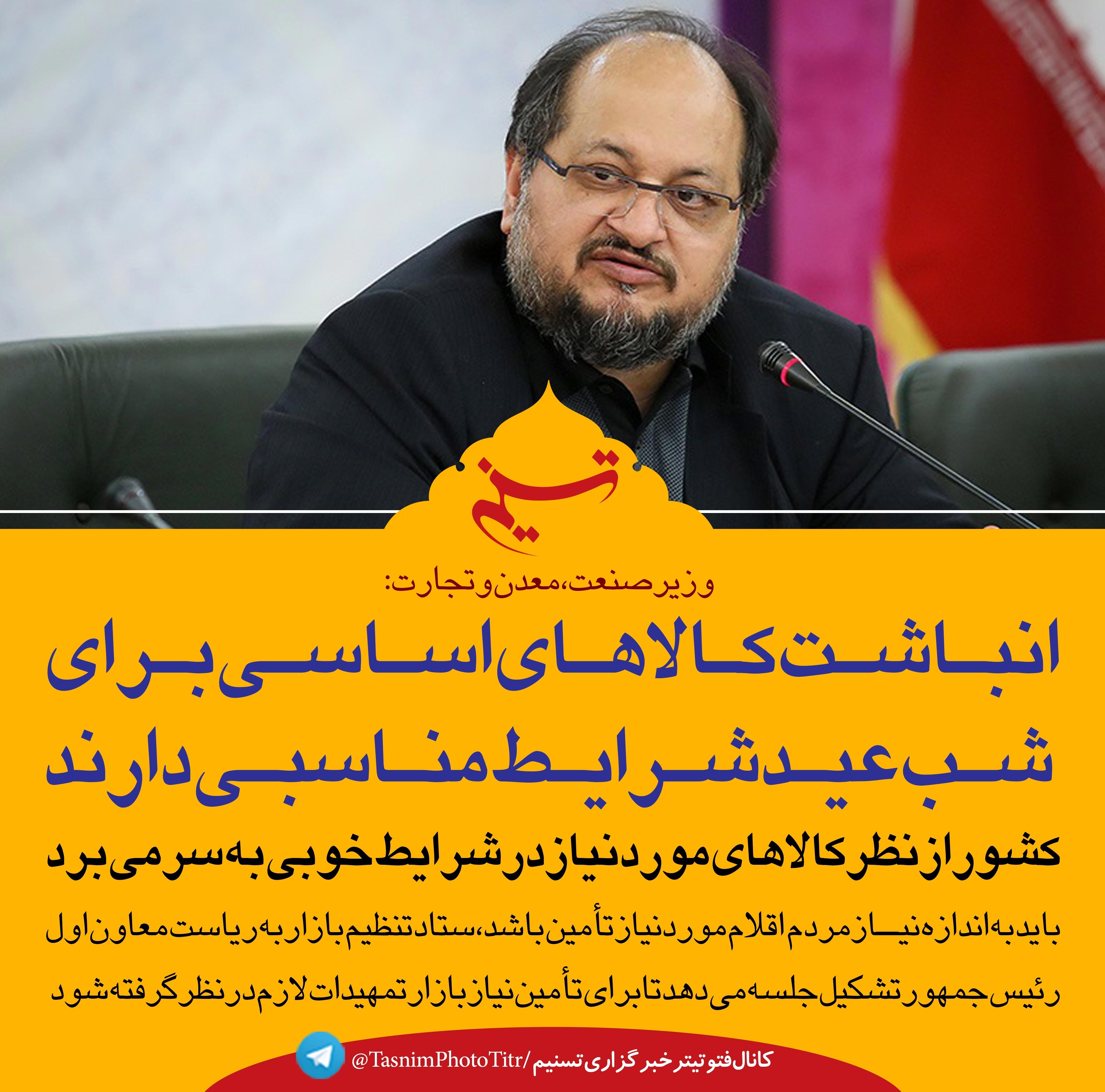 وزیر صنعت، معدن و تجارت گفت: انباشت کالاهای اساسی برای شب عید شرایط مناسبی دارند.