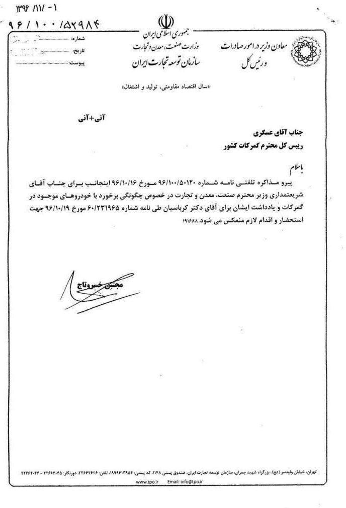 نکته جالب توجه آنکه رئیس سازمان توسعه تجارت پیشنهاد ترخیص خودروهای با ارزش بالای 40 هزار دلار را نیز به وزیر صنعت مطرح کرده و وزیر نیز این پیشنهاد را پذیرفته است. موضوع از آن قرار است که بهتازگی دولت مصوبهای داشته که بر اساس آن واردات خودرو با ارزش بالای 40 هزار دلار ممنوع شده است.