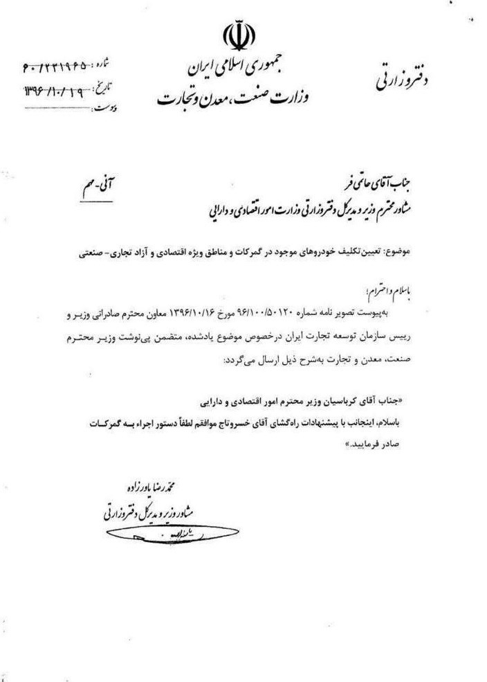 در حال حاضر با نامهنگاریهای انجامشده بین وزرای صنعت و اقتصاد و رؤسای گمرک و سازمان توسعه تجارت بهنظر میرسد خودروهای درگمرکمانده تعیین تکلیف شدهاند.