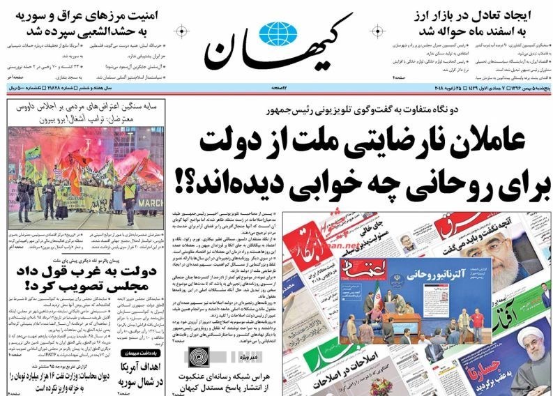 به گزارش گروه رسانه‌های خبرگزاری تسنیم، تصاویر صفحات نخست روزنامه‌های کشور امروز پنج‌شنبه 5 بهمن به‌شرح زیر منتشر می‌شود.