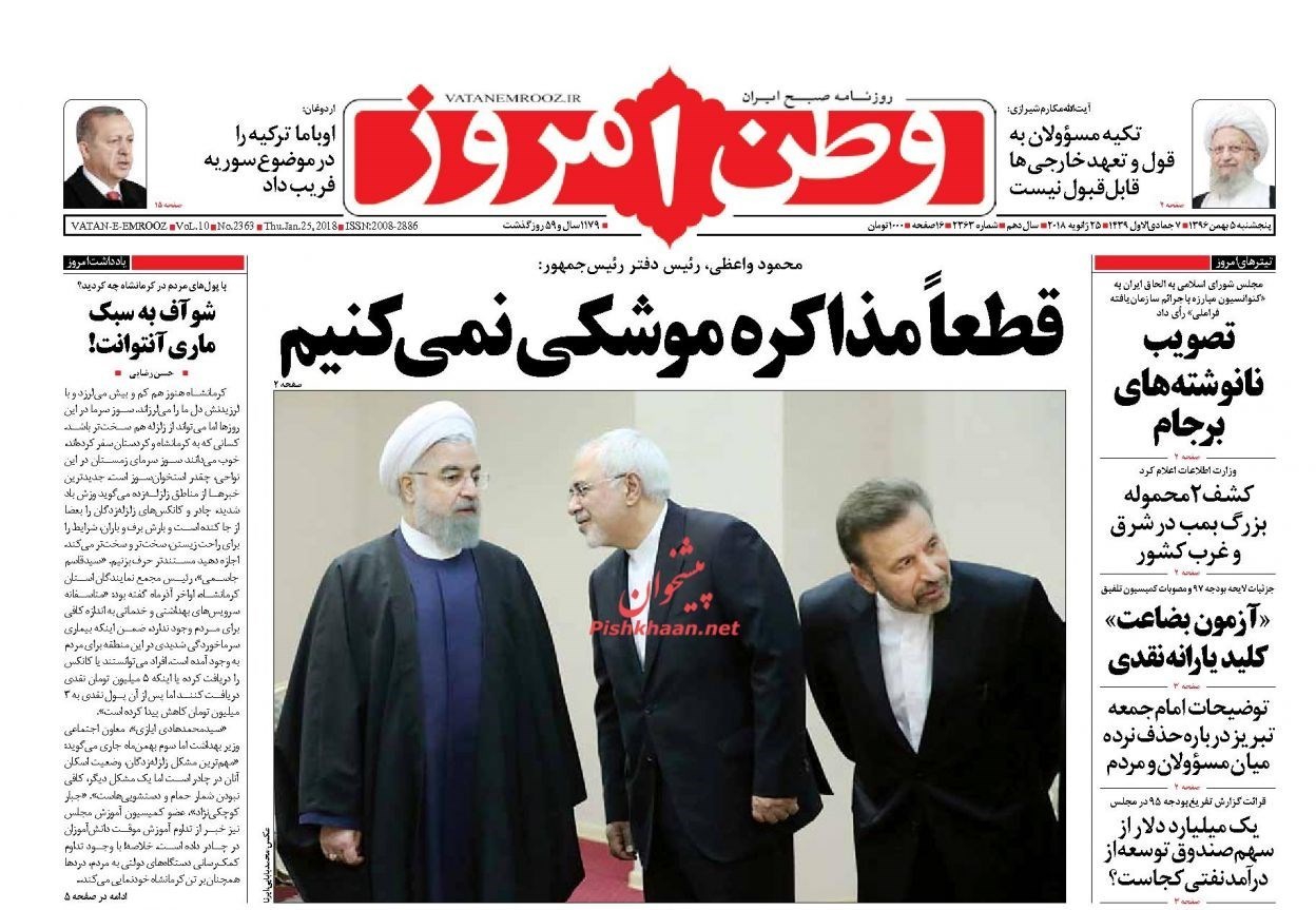 منتخب تصاویر صفحات نخست روزنامه‌های پنج‌شنبه 5 بهمن منتشر می‌شود.