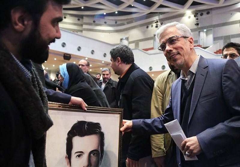 حضور محمد مهدی ابهری نژاد یکی از هنرمندان جوان همراه با تابلو نقاشی چهره شهید باقری توجه برانگیز بود.