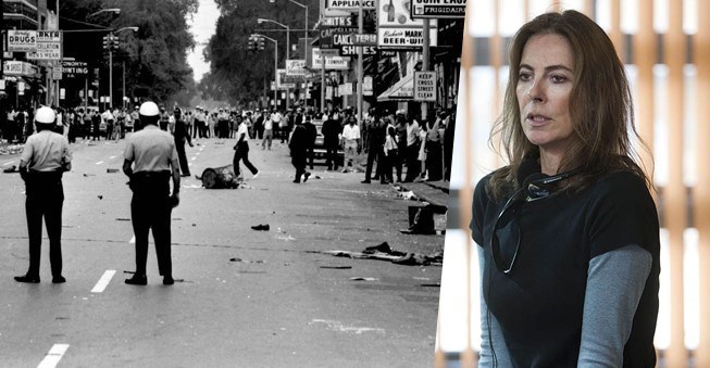 اما فیلم «دیترویت» اثر اخیر خانم بیگلو، روایتگر قیام سیاهان  این شهر در دهه شصت میلادی است. با توجه به توالی شورش‌های سیاهان در چند سال اخیر، بیگلو به سراغ مهمترین قیام رنگین پوستان در طول تاریخ آمریکا رفته است.