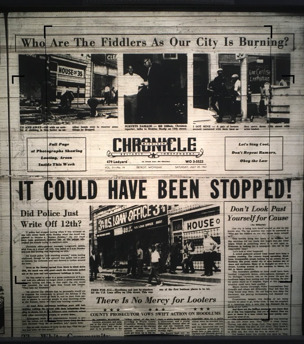 اغلب سیاهان دیترویت حادثه پنجاه سال پیش را همچنان به یاد همه می‌آورند. و ذهن تحلیلگر فرهنگی مستعد می‌تواند درک کند با توجه به سرکوب دامنه‌دار سیاهان در شرایط کنونی، آمدن و رفتن باراک اوباما به عنوان نخستین رئیس جمهور رنگین پوست هیچ تغییری در مناسبات نژادی این کشور ایجاد نکرده و آمریکای امروز همچنان مشابه همان موقعیت نژادپرستانه دهه شصت میلادی را همچنان تجربه می‌کند.