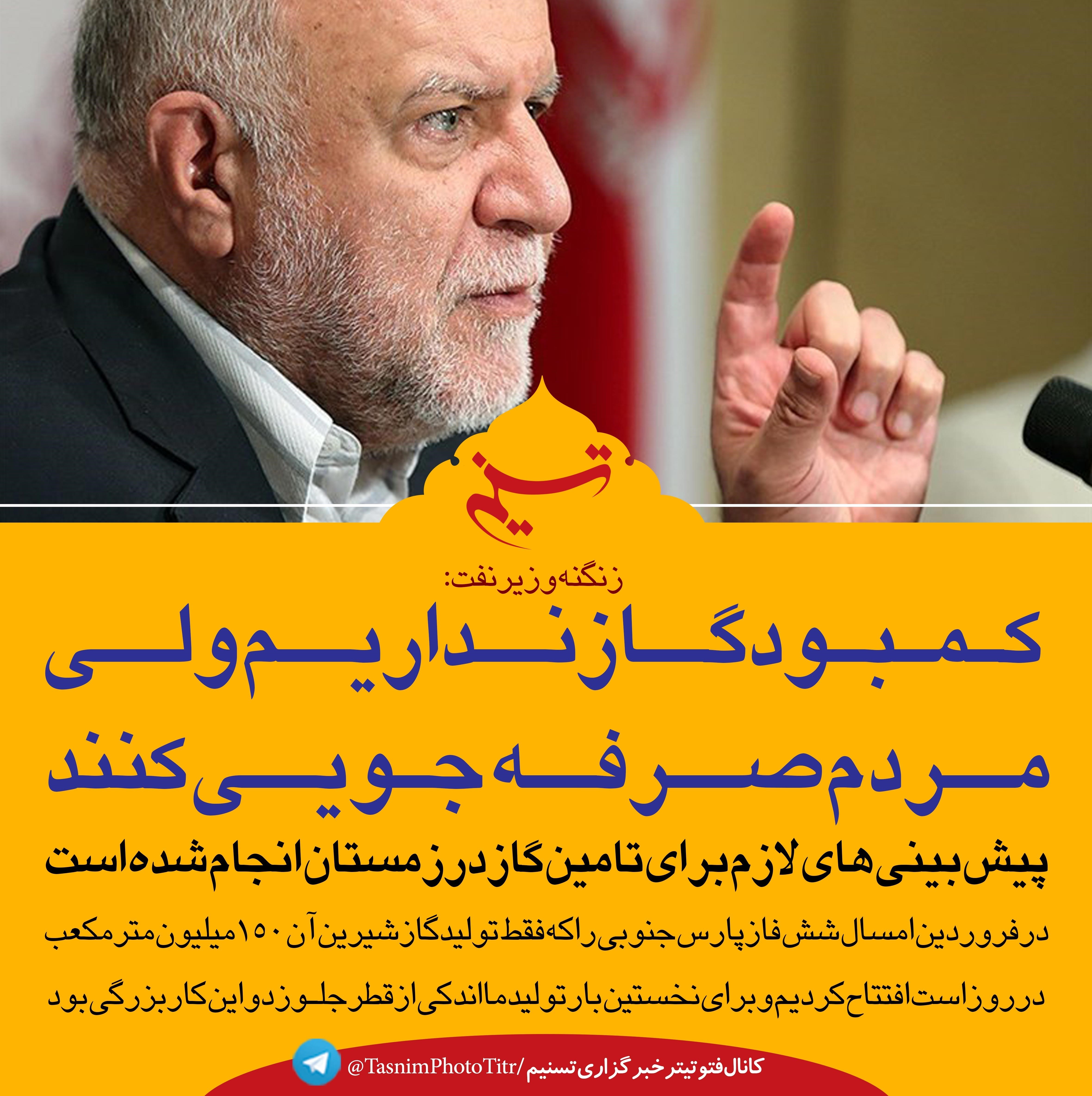 فتوتیتر/زنگنه:کمبود گاز نداریم ولی مردم صرفه‎جویی کنند