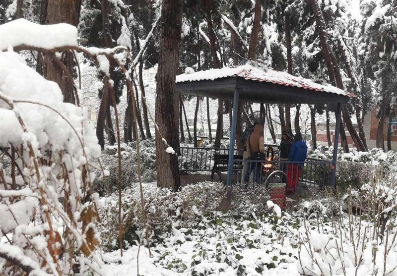 بارش نخستین برف زمستانی پردیسان قم به روایت تصویر