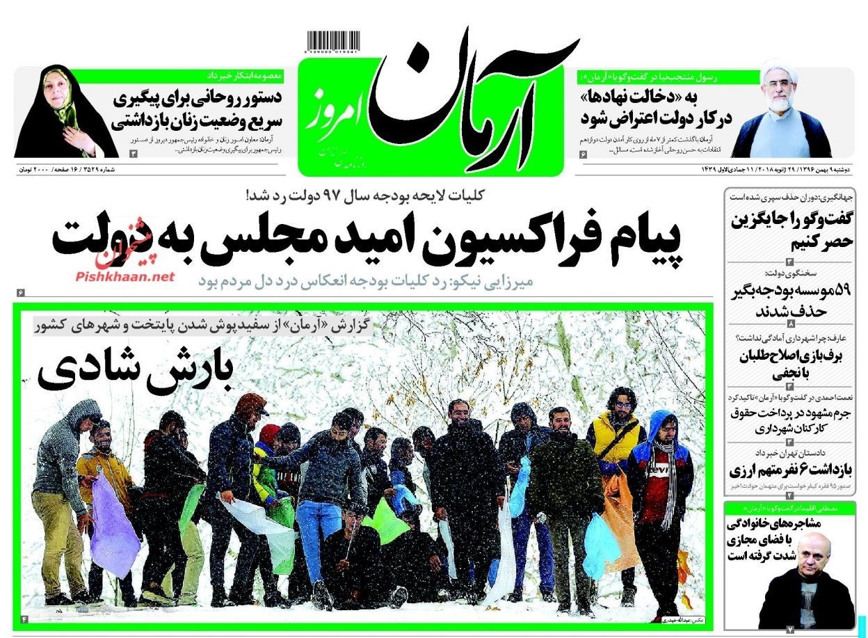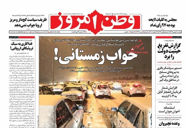 تصاویر صفحه روزنامه‌های دوشنبه 9 بهمن