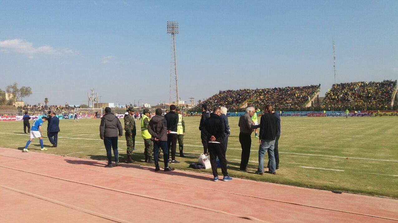 *قسمتی از پشت دروازه به حالت سکو قرار داده شده تا هواداران درآنجا قرار بگیرند که این مسئله باعث اعتراض سعید فتاحی رئیس کمیته مسابقات شد. او اعلام کرد تا زمانی که آنجا تخلیه نشود بازی آغاز نخواهد شد.