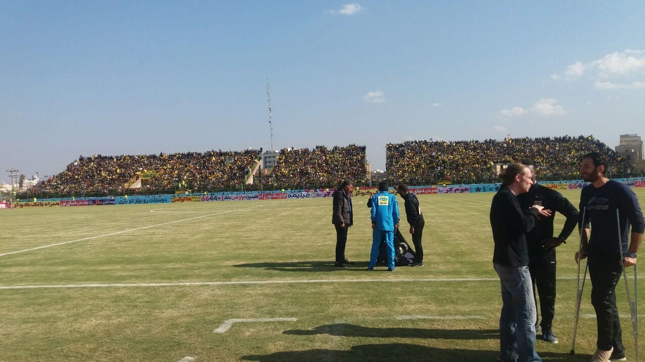 *بهنام برزای که سابقه بازی در صنعت نفت آبادان را دارد از سوی هواداران نفت تشویق شد.