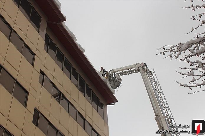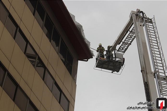 کیانی تصریح کرد: آتشنشانان بلافاصله در محل حادثه حضور یافته و پس از انتقال همه خودروهای پارک شده در اطراف این ساختمان هشت طبقه به مکانی امن، با استفاده از خودروی نردباندار خود را به بالای پشت بام رسانده و به منظور پیشگیری از وقوع حوادث مشابه، برفهای باقیمانده را از بالای شیروانی این ساختمان پاکسازی کردند.