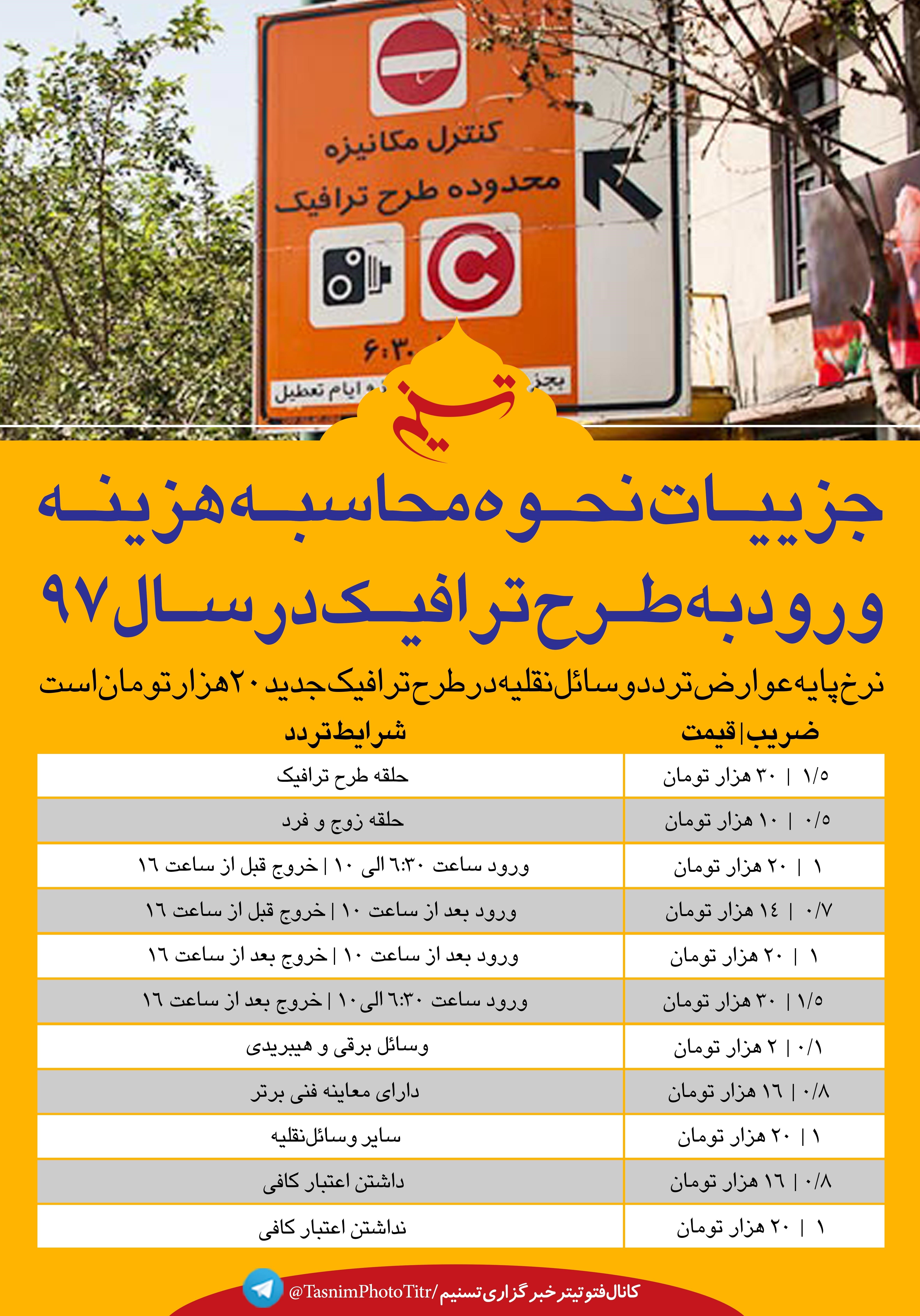 فتوتیتر/جزییات نحوه محاسبه هزینه ورود به طرح ترافیک در سال 97