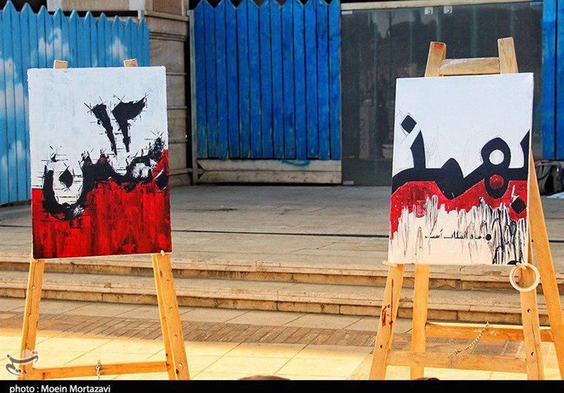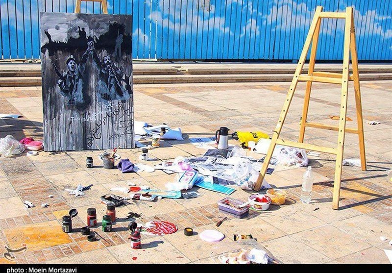 تابلوهای نقاشی از خاطرات دوران انقلاب اسلامی در اصفهان به صورت زنده در احضار عمومی کشیده و به نمایش گذاشته شد.