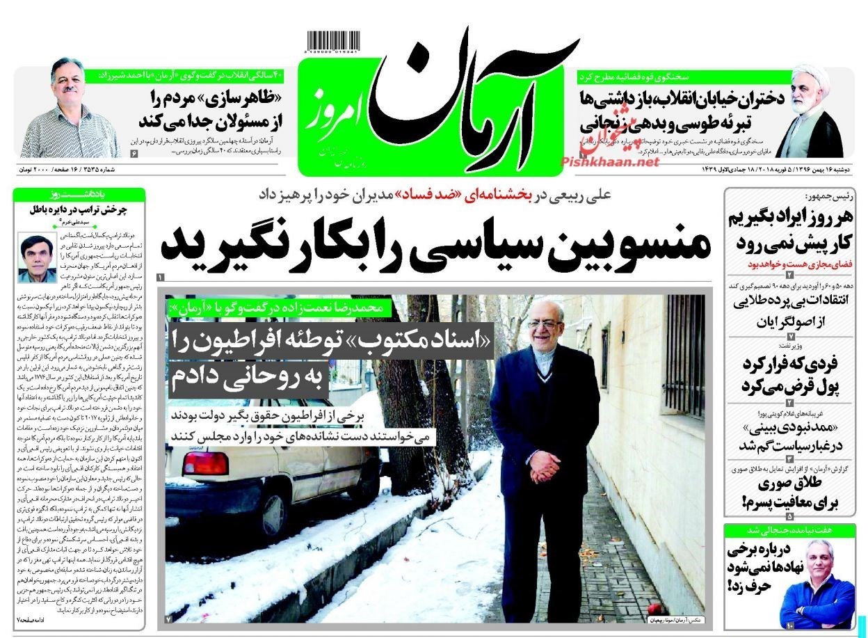 تصاویر صفحه روزنامه‌های دوشنبه 16 بهمن