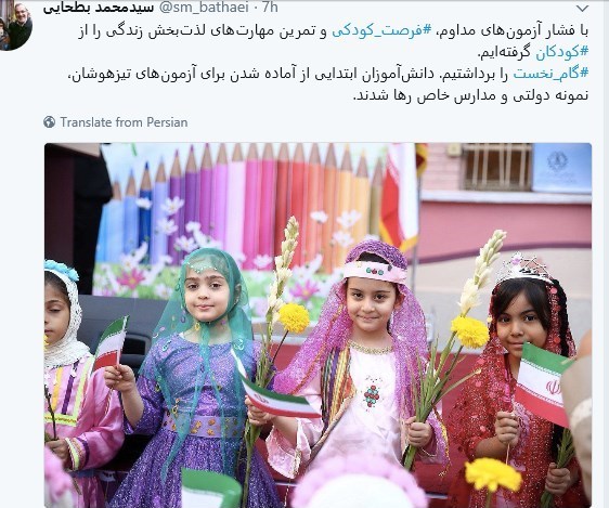 به گزارش خبرنگار اجتماعی خبرگزاری تسنیم، سید محمد بطحایی وزیر آموزشوپرورش در پیام تویتری خود اظهار کرد: با فشار آزمونهای مداوم، فرصت کودکی و تمرین مهارتهای لذتبخش زندگی را از کودکان گرفتهایم.