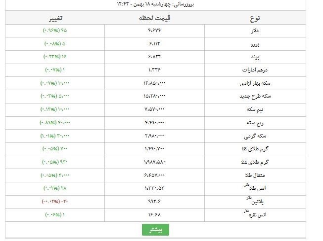 ** توجه داشته باشید نرخ دلار در جدول زیر با نرخ لحظهای دلار در کف بازار متفاوت است, در این خبر منظور از نرخ دلار که در بالا هم درج شده، قیمت لحظهای دلار است که مقابل پاساژ افشار معامله میشود.