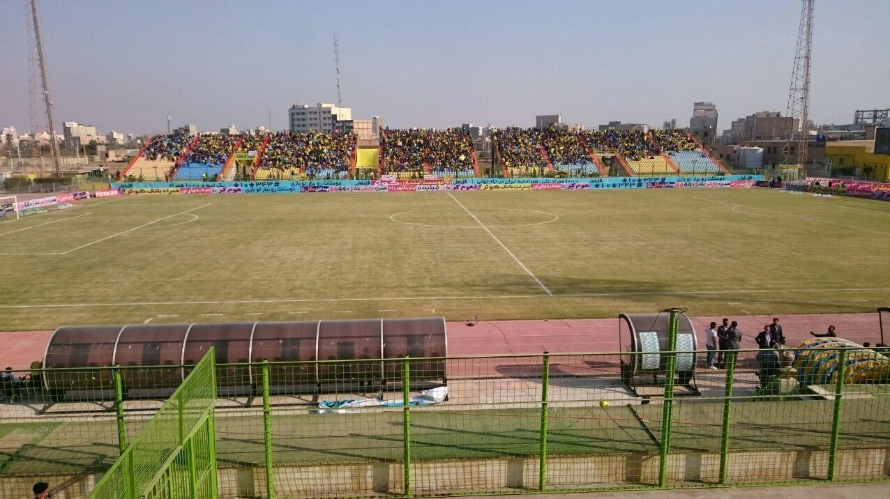 * اکثر هواداران آبادانی با لباس‌های زرد و عینک‌های معروف ری‌بن در ورزشگاه حضور دارند.