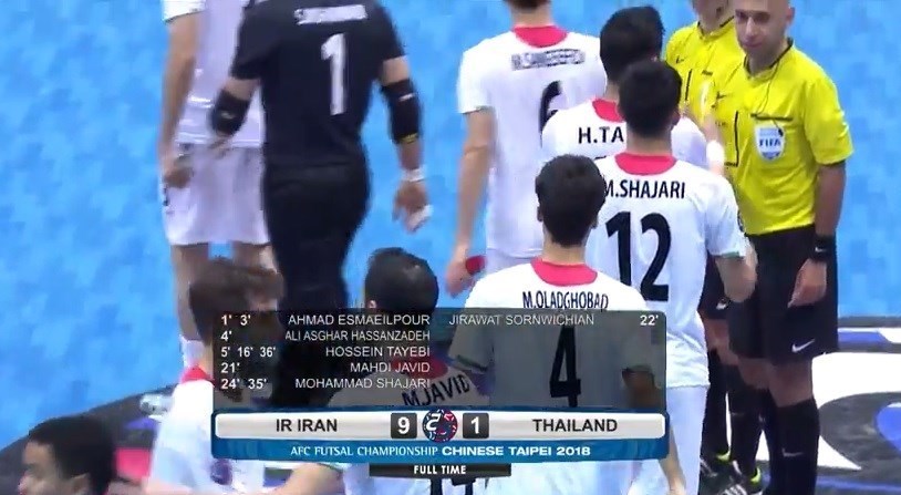به گزارش گروه ورزشی باشگاه خبرنگاران تسنیم «پویا»، تیمهای ملی فوتسال ایران و تایلند از ساعت 11:30 امروز (پنجشنبه ــ بهوقت ایران) در چارچوب مرحله یکچهارم نهایی مسابقات فوتسال قهرمانی آسیا به مصاف هم رفتند که ملیپوشان کشورمان در این بازی با نتیجه 9 بر یک به برتری دست یافتند و به مرحله نیمهنهایی رقابتها رسیدند.