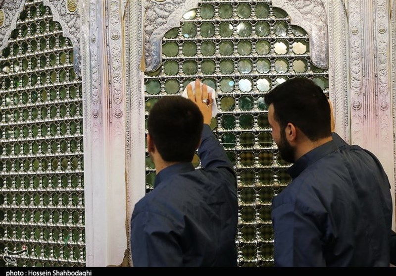 قم| آئین غبارروبی مضجع شریف کریمه اهل‌بیت (س) برگزار شد