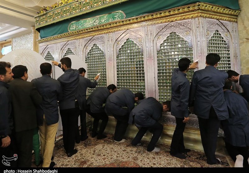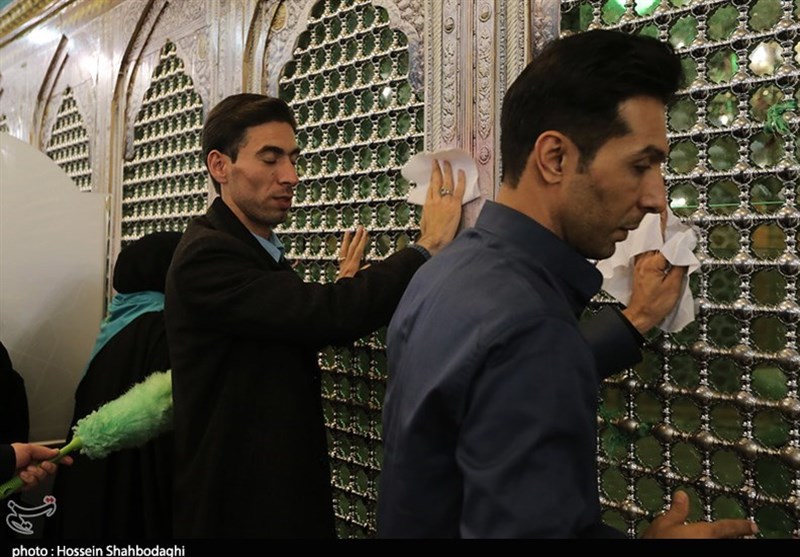 قم|غبارروبی مضجع حضرت معصومه(س) توسط داوران فوتبال به روایت تصویر