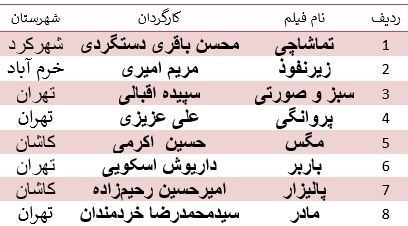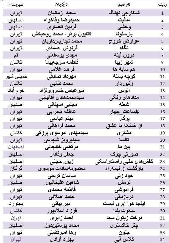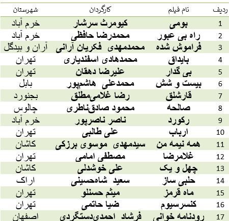 اسامی فیلمهای راهیافته به شرح زیر است: