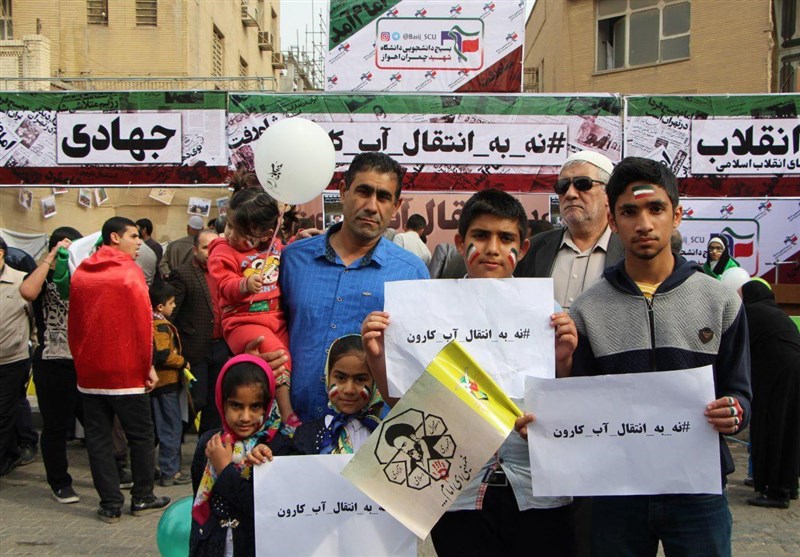 بسیجیان دانشگاه چمران با راه اندازی 3 غرفه در مسیر راهپیمایی 22 بهمن، چند موضوع را به خیابان سلمان فارسی اهواز می‌کشانند؛ مردمی کردن کمپین نه به انتقال آب کارون، امضای طومار مخالفت با انتقال آب، ثبت‌نام از مردم برای تشکیل گروه‌های جهادی سازندگی و کافه انقلاب که نوعی تریبون آزاد است.
