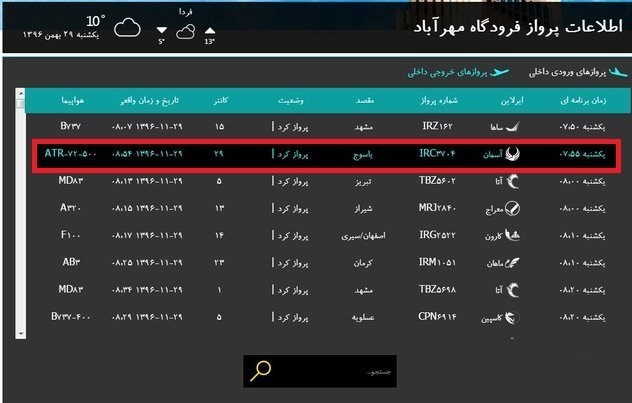 • سقوط پرواز تهران یاسوج