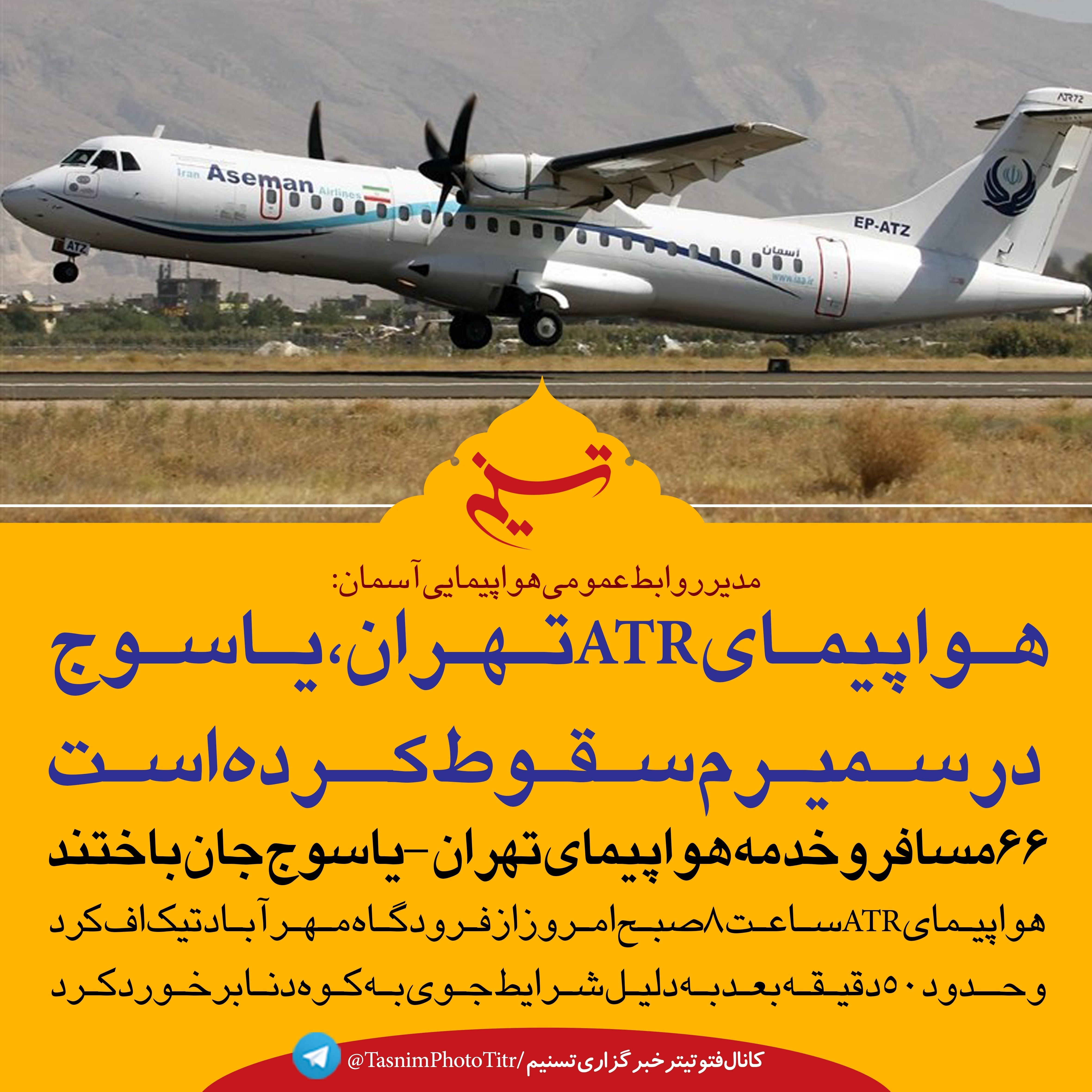 هواپیمای ATR متعلق به شرکت آسمان ساعت 8 صبح امروز پس از پرواز از فرودگاه مهر‌آباد و طی مسیر به سمت یاسوج در منطقه دناکوه سمیرم از رادار خارج شد و سقوط کرد.