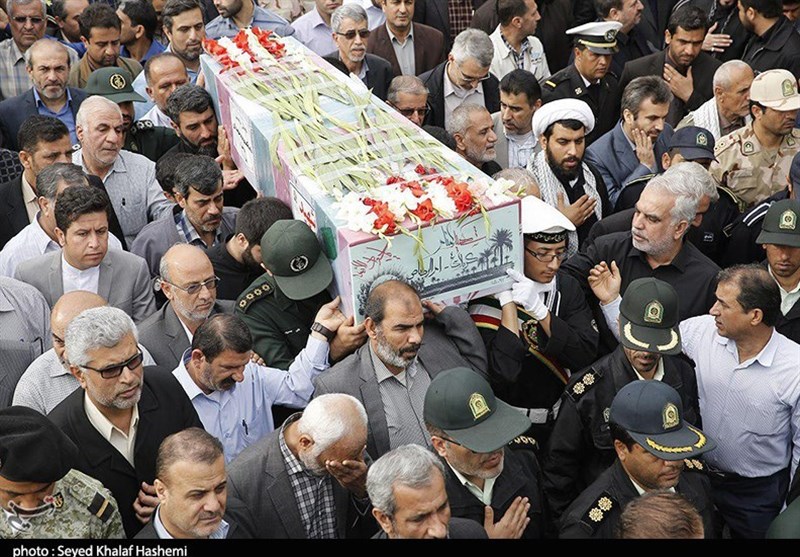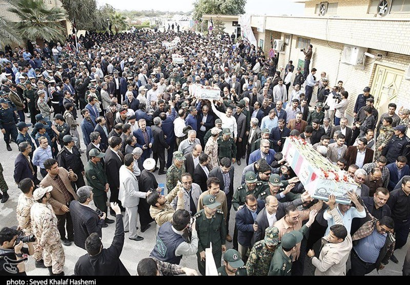 قشرهای مختلف مردم شهیدپرور بوشهر در خیابان امام رضا(ع)، پیکرهای این شهیدان را گل و گلاب باران و با آرمانهای شهدای والامقام تجدید میثاق کردند.