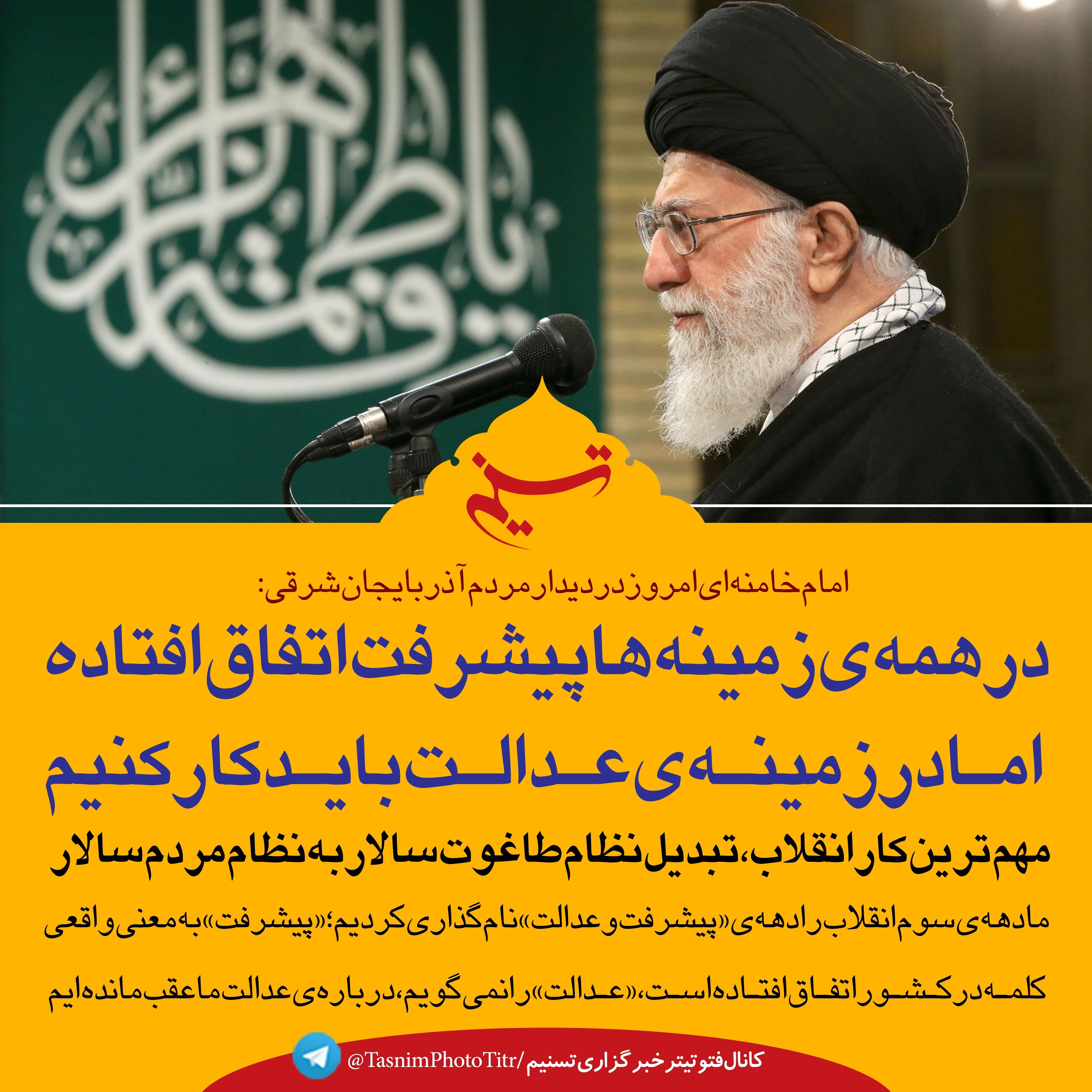 فتوتیتر|امام خامنه ای:در همه‌ی زمینه‌ها پیشرفت اتفاق افتاده اما در زمینه‌ی عدالت باید کار کنیم