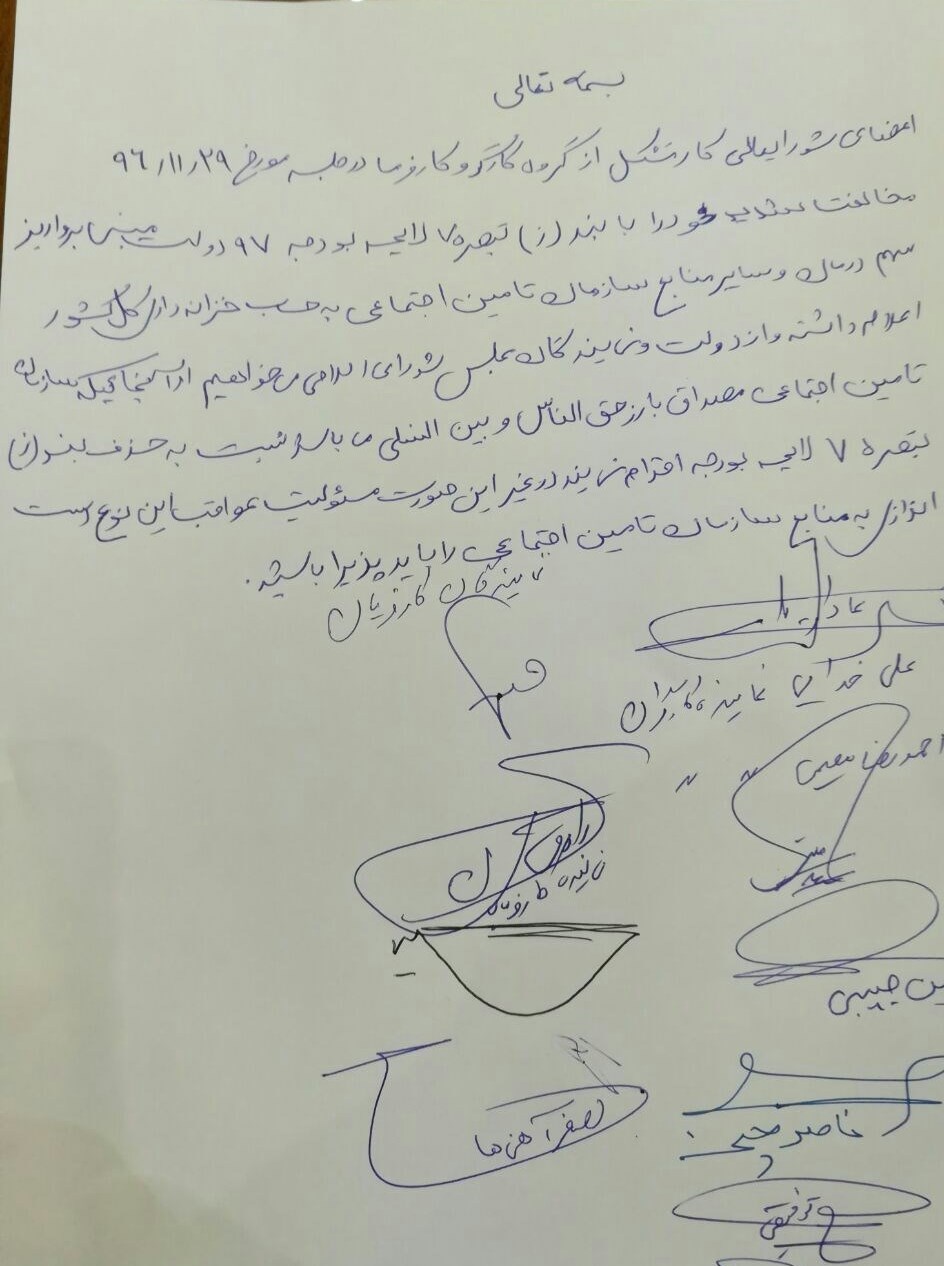 نمایندگان کارگری و کارفرمایی حاضر در جلسه امروز شورایعالی کار در مخالفت با بند ز تبصره 7 لایحه بودجه 97 جلسه شورایعالی کار را ترک کردند.