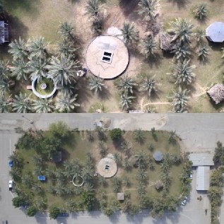 تصاویر هوایی از محل تدفین شهدای گمنام در تنها جزیره صنعتی کشور، جزیره کشتی سازی صدرا در ادامه قابل مشاهده است: