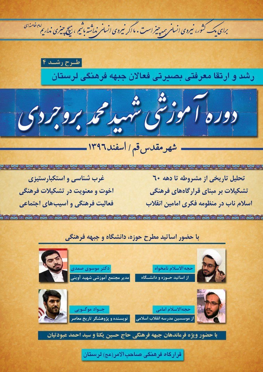 مهرداد لک در گفتوگو با خبرنگار تسنیم در خرم آباد اظهار داشت: دوره آموزشی "شهید محمد بروجردی" ویژه کادر مجموعههای جبهه فرهنگی انقلاب در استان لرستان برگزار می شود؛ در راستای بیانات حضرت امام خامنه ای(مد ظله العالی) پیرامون رشد و ارتقا فعالان جبهه فرهنگی، این دوره در سه حوزه معرفت، مهارت و معنویت برگزار می شود.