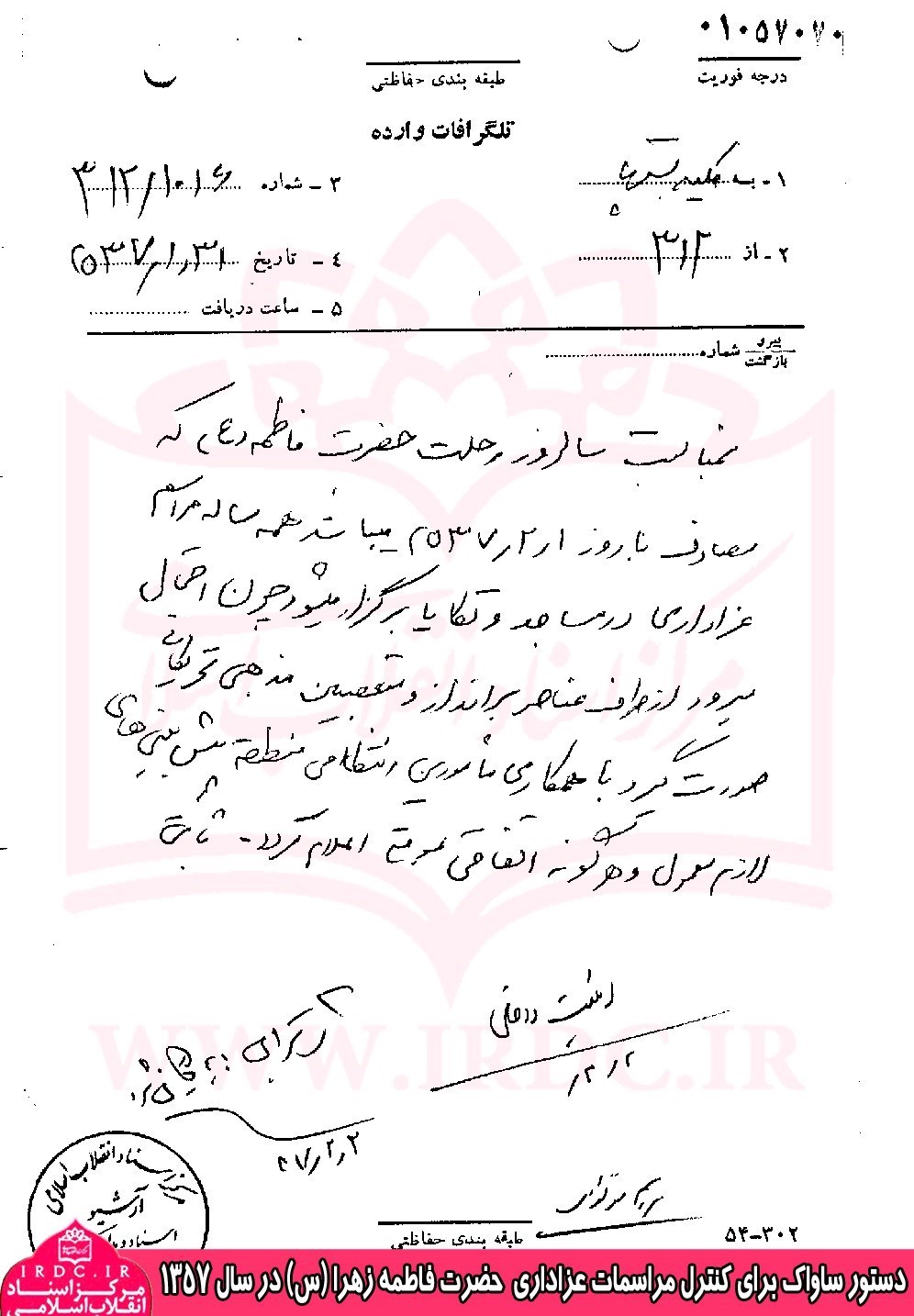 به همین دلیل اداره امنیت داخلی ساواک طی دستوری در 31 فروردین 1357 به کلیه پستهای خود دستور مراقبت بیشتر میدهد.