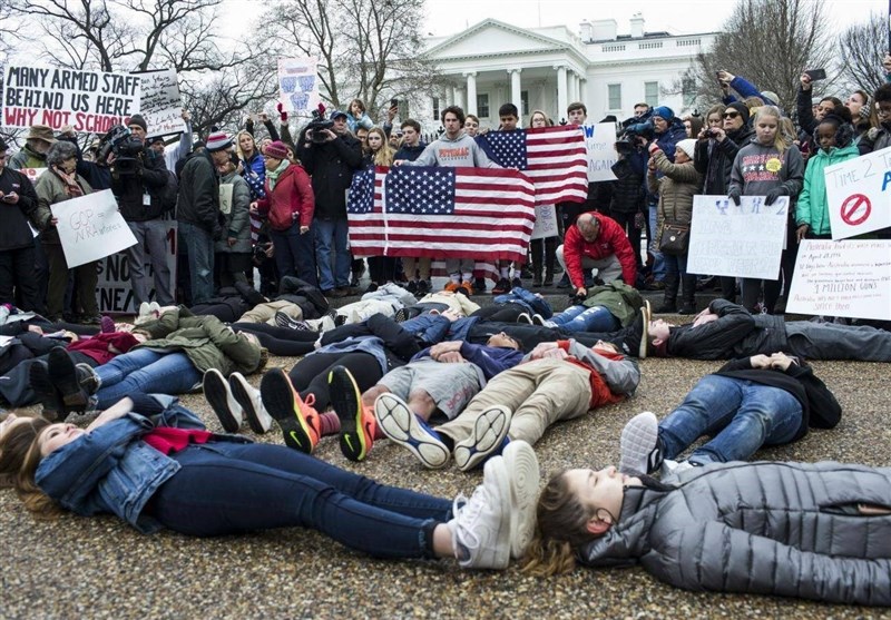 17 نفر از اعضای گروهی موسوم به "نوجوانان برای اصلاح کنترل سلاح" در برابر کاخ سفید دراز کشیدند تا به صورت نمادین تعداد دانش آموزانی را که در این تیراندازی کشته شدند، نشان دهند. این دانش آموزان بر اثر تیراندازی در دبیرستانی در فلوریدا جان خود را از دست دادند.