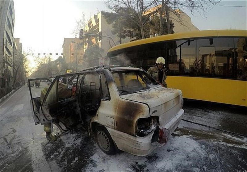 گزارش میدانی تسنیم از خیابان پاسداران؛ خودروی یکی از اهالی محل به آتش کشیده شد