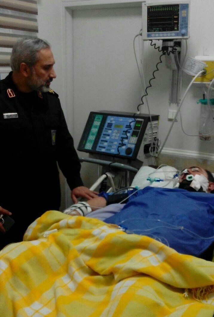 به گزارش گروه سیاسی خبرگزاری تسنیم، شب گذشته سردار محمدرضا یزدی فرمانده سپاه تهران بزرگ با حضور در یکی از بیمارستانهای تهران، از مجروح حملات تروریستی اوباش خیابان پاسداران که منسوب به دراویش گنابادی بودند، عیادت کرد.