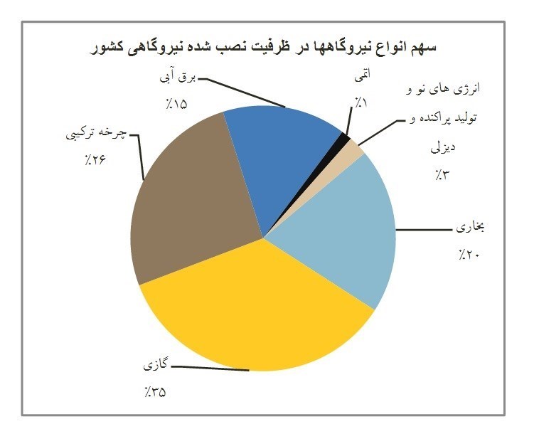 در این بین، بیشترین سهم مربوط به نیروگاههای سیکل ساده گازی و کمترین سهم مربوط به انرژی های تجدیدپذیر است.