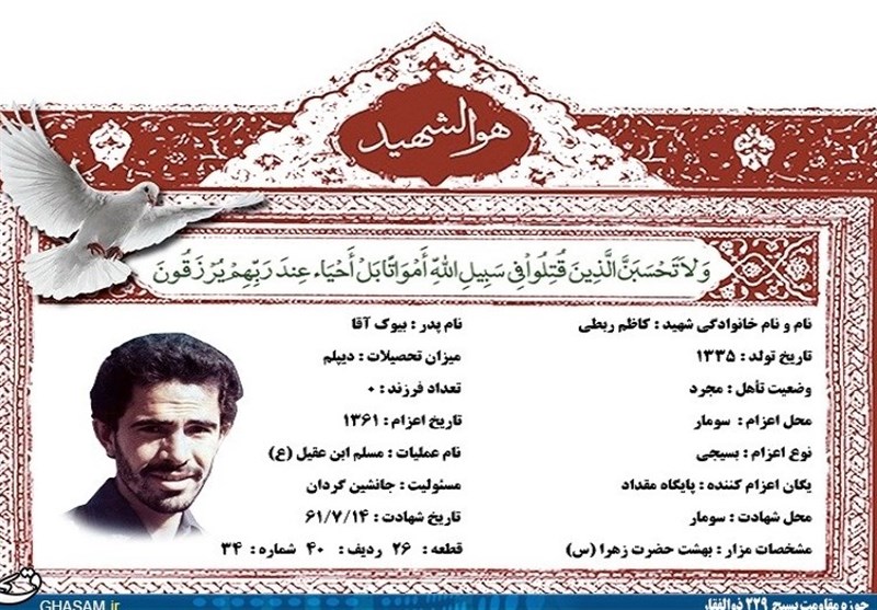 با سلام و درود به رهبر انقلاب حضرت امام خمینی(ره) و به امت شهید پرور ایران و درود و رحمت بر مزار پاک شهیدان گلگون کفن از صدر اسلام تاکنون. این است متن وصیتنامه این بنده سرا پا تقصیر «کاظم ربطی» امید است که کلیه برادران و خواهران مسلمان مواردی که را که امام امت میفرمایند مو به مو مورد عمل در آورند تا جامعه اسلامی ما رو به رشد و تعالی رود. من آگاهانه در این راه قدم گذاشتم و فقط برای پیروزی اسلام و قرآن در جبههها حاضر شدم از عموم برادران و خواهران میخواهم که این بنده حقیر را حلال کنند.
