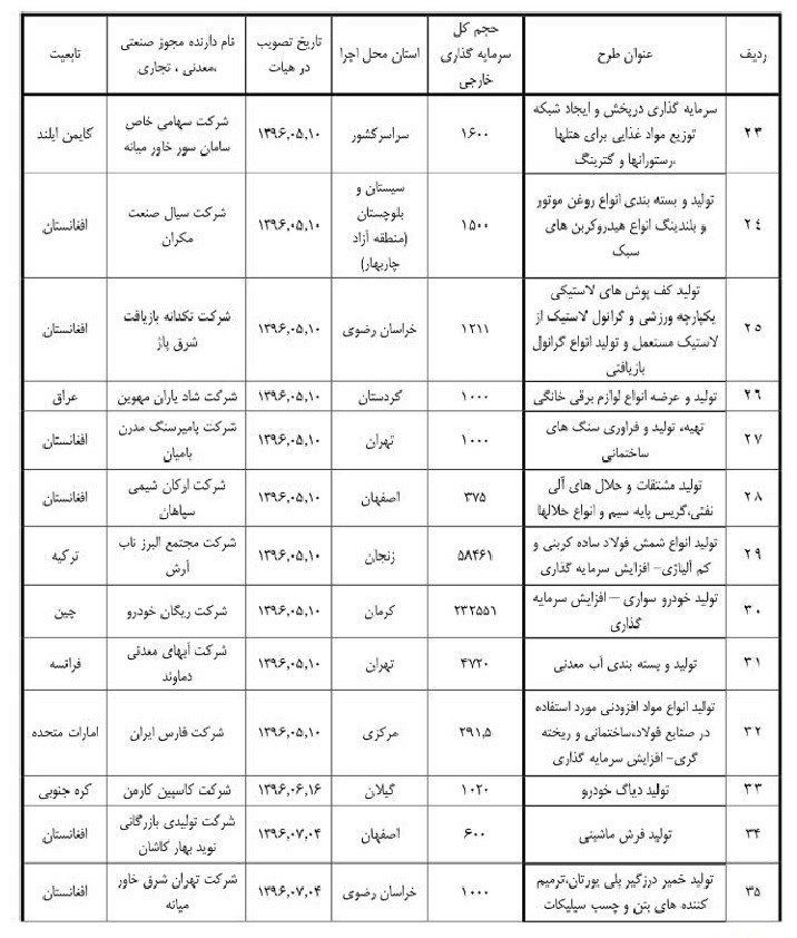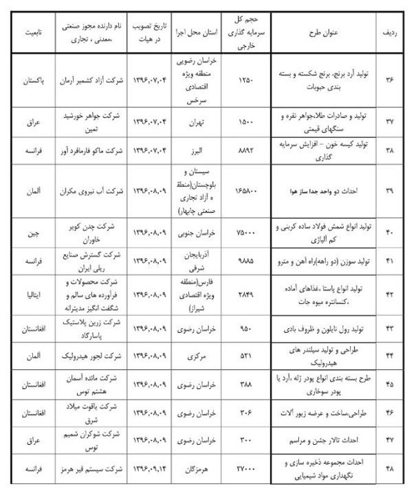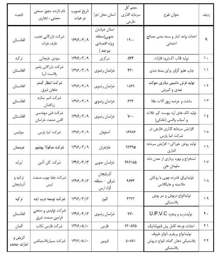 مطابق آمار در نه ماهه امسال 58 طرح به تصویب هیأت سرمایه گذاری رسیده که حجم کل سرمایه گذاری در این طرح‌ها 2.7 میلیارد دلار است. این حجم سرمایه گذاری در حالی امسال در بخش صنعت انجام شده که میزان سرمایه گذاری خارجی در9 ماهه سال گذشته با 52 طرح صنعتی 5 میلیارد دلار بوده است.