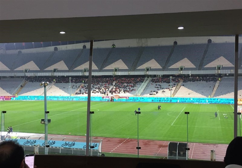 * در فاصله کمتر از 15 دقیقه تا آغاز بازی کمتر از 10 هزار هوادار در ورزشگاه حضور دارند.