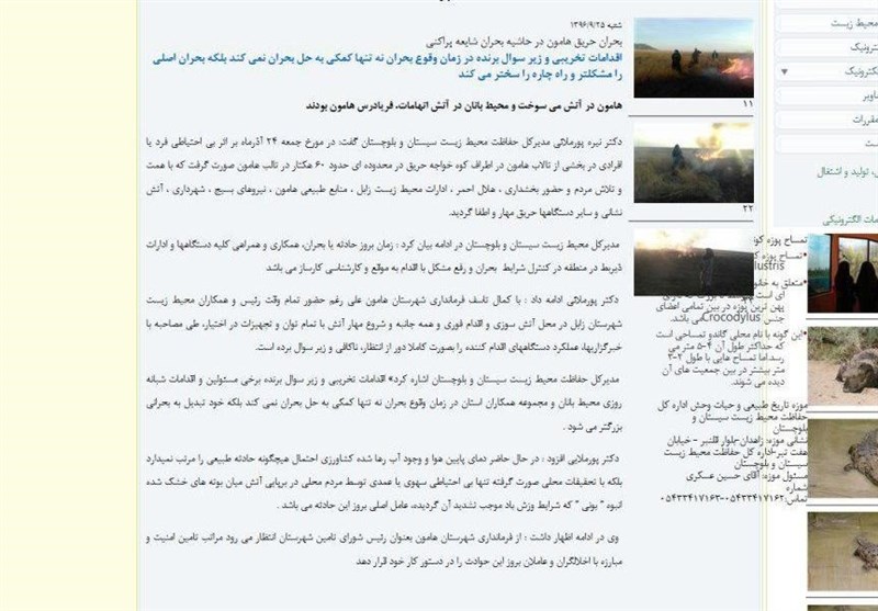 در تکذیبیه محیطزیست سیستان و بلوچستان هم موضوع خشک بودن تالاب تکذیب شده و هم وسعت آتشسوزی 60 هکتاری هامون در آذرماه امسال بیاساس دانسته شده است. خبرهایی که پیشتر شخص مدیرکل محیطزیست سیستان و بلوچستان از طریق پایگاه اطلاعرسانی محیطزیست رسانهای کرده بود.